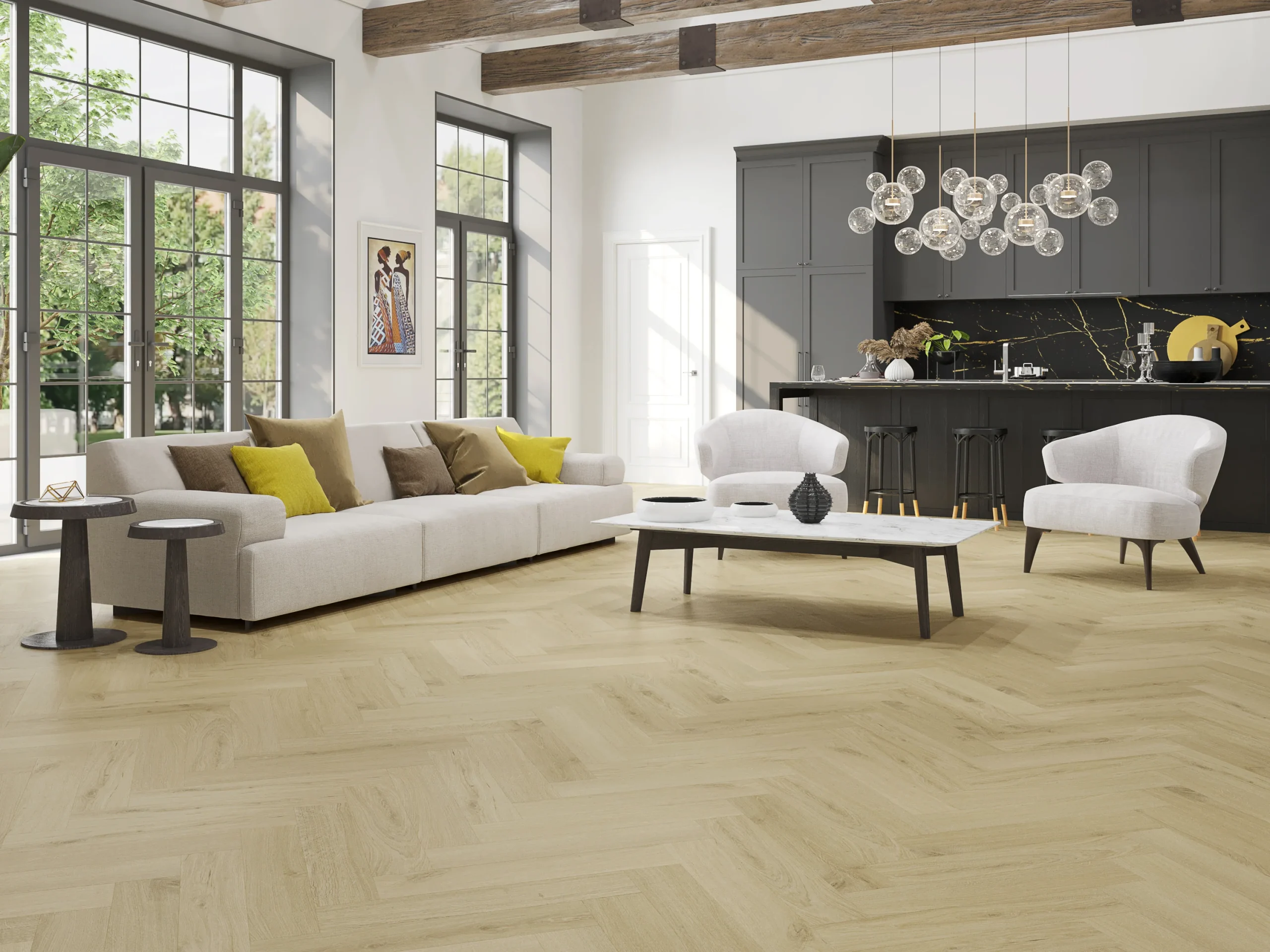 SPC Click Herringbone Nordic White Tile
